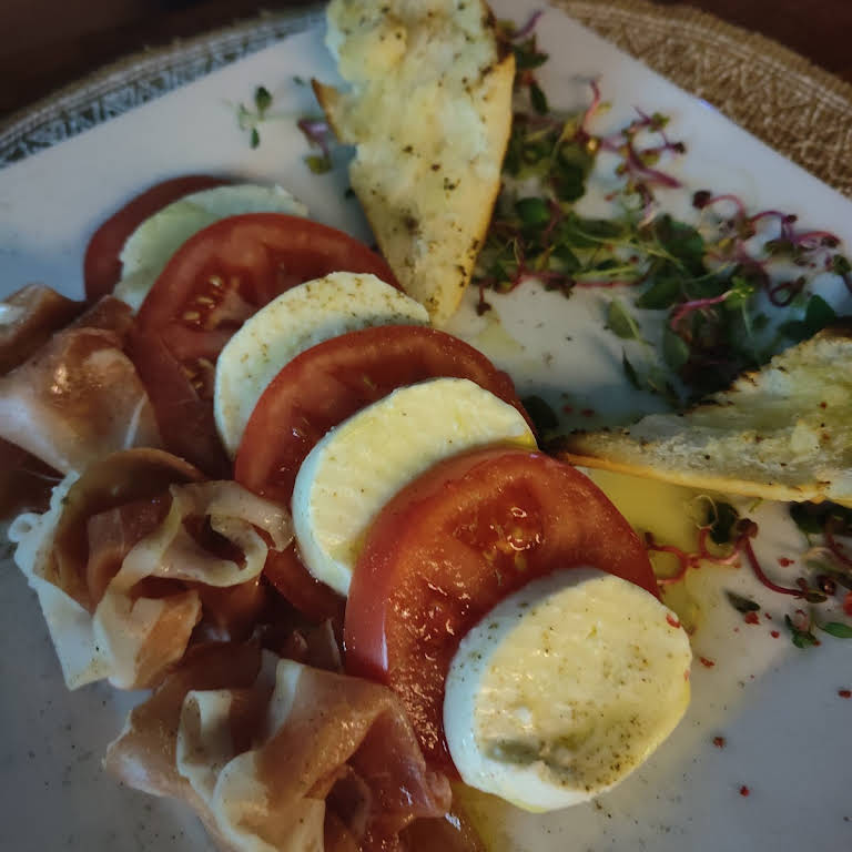 PLN 35.00Sałata lodowa mix z oliwą z oliwek, pomidorem i czerwoną cebulą, ogórek małosolny/kiszony, 2 sosy czosnkowy - sambalGRILLOWANE WARZYWA Z PARMEZANEM I ZAPIEKANYM TOSTEM